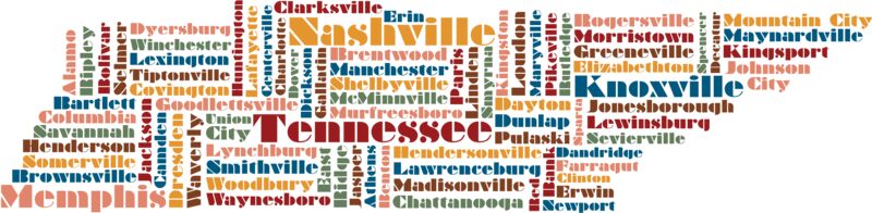 Tennessee City Names Outline Silhouette 1